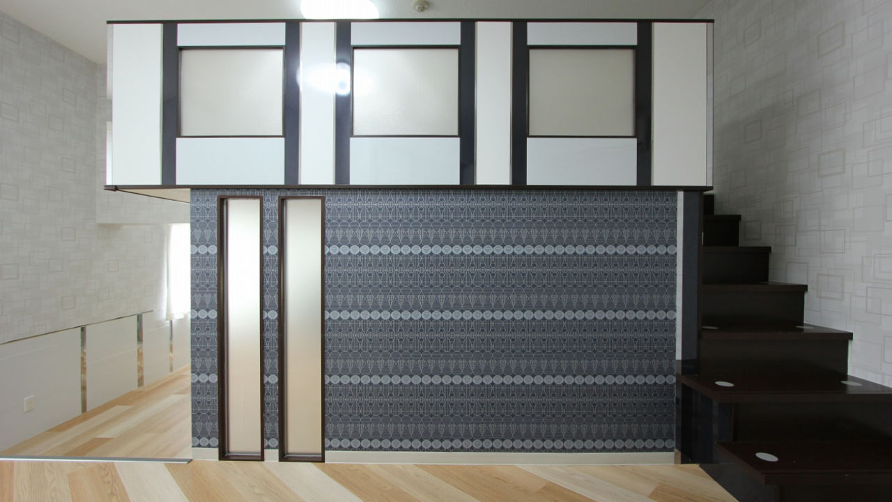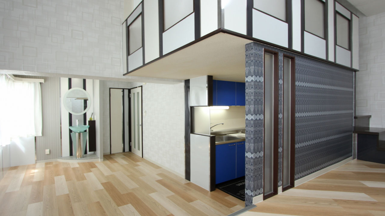 天井の高いリビングにガラスボウルの洗面を効果的に配すことでしなやかさと上質さを感じるデザインとしたお部屋