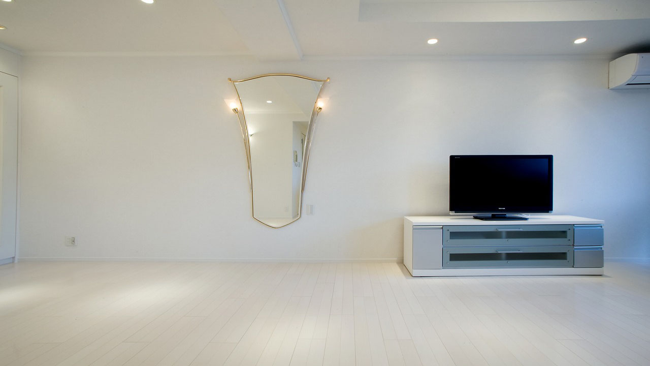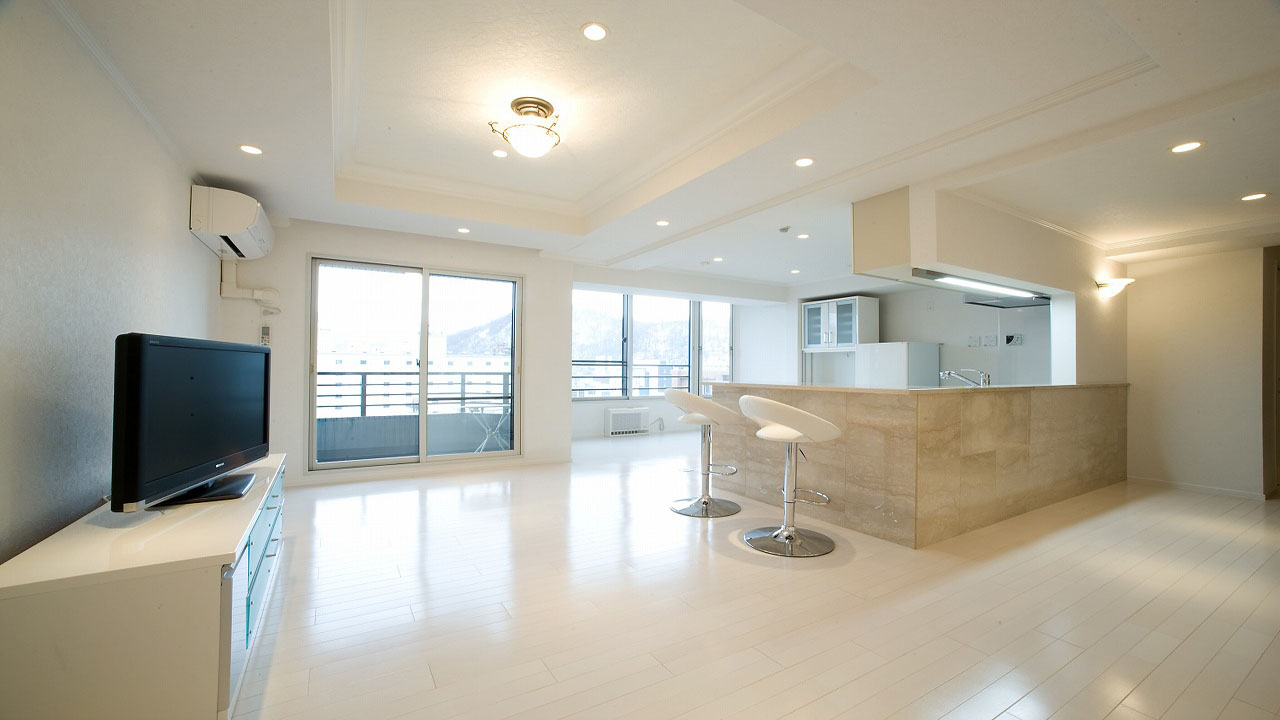 白が引き立つ明るい室内に、アクセントの大理石を取り入れて、モダンでありながら温かみを感じるお部屋。